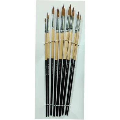 Keep Smiling Round Artist Brush Set Pack of 9 is a great art set. It is beautiful for people of all ages. There are nine different types of brushes in the set. All of these brushes have a round tip for detailed work. All the brushes will be made with top-quality materials. They produce magnificent work without putting too much hard work into it. In one set, there will be a variety of brushes of different sizes. The black-coloured handles look stylish and sleek. The bristled brown hair colour is soft and durable. You'll love the feel of these brushes in your hand.