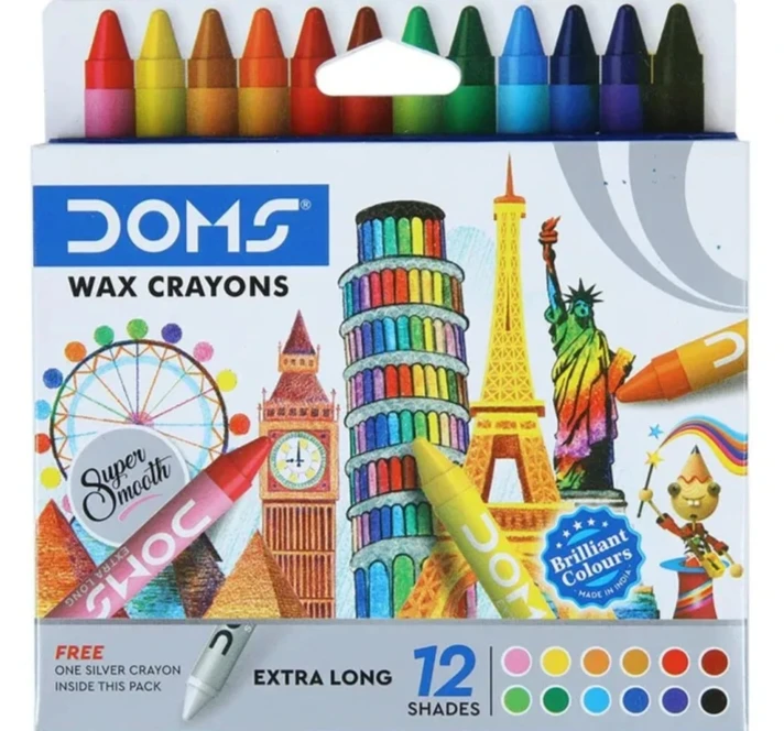 Doms 12+1 Shades Extra Long Coloured Wax Crayons for School Kids